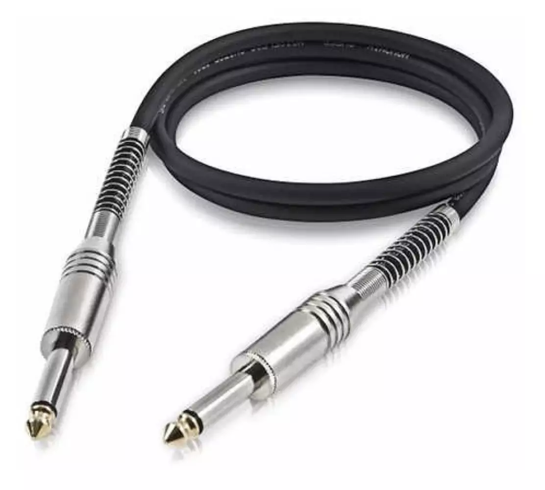 Cabo mono para instrumento com conectores P10 macho em ambas as extremidades, comprimento de 3 metros. Ideal para guitarras, baixos e teclados, garantindo transmissão de sinal limpa em palco ou estúdio.