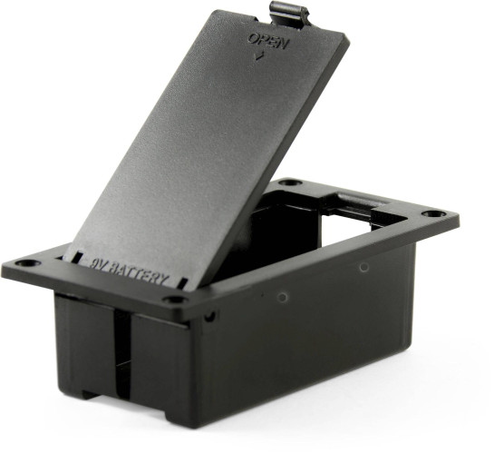 Compartimento de bateria 9 volts para sistemas eletrônicos de instrumentos. Indicado para guitarras e contrabaixos equipados com circuitos ou captadores ativos.