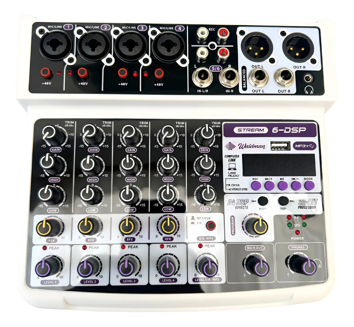 Mesa de Som Waldman 6 Canais C/ Interface Áudio St 6 DSP