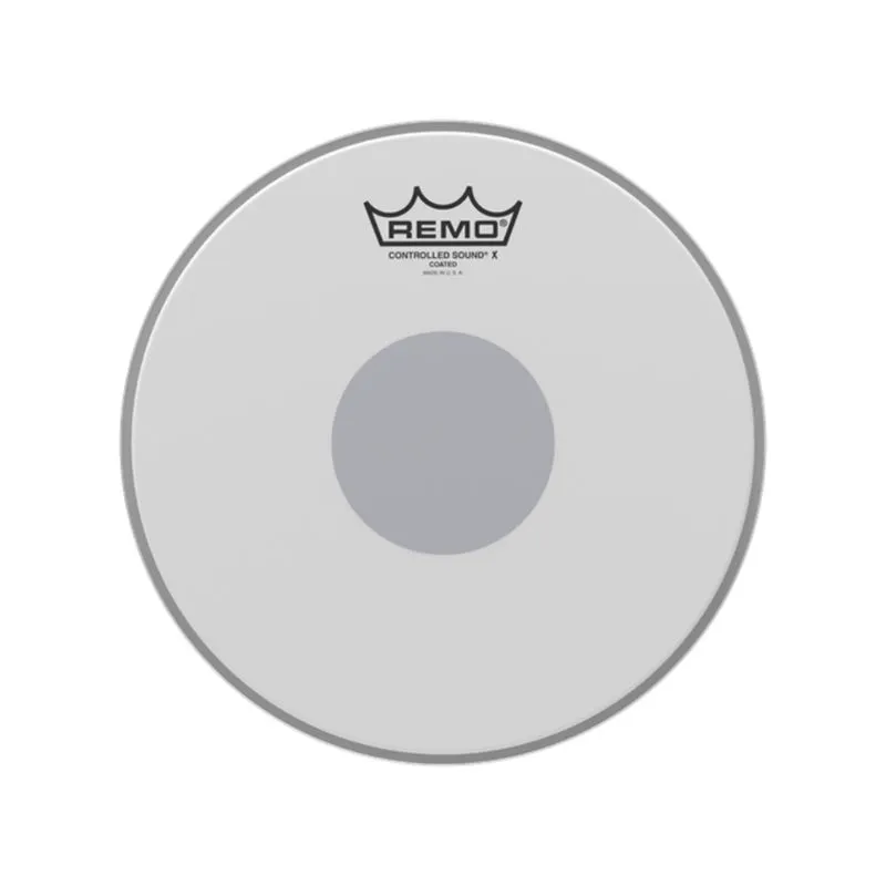 As peles Controlled Sound X Coated Bottom Black Dot apresentam tons médios focados com maior durabilidade. A área externa da pele oferece tom e sensibilidade aprimorados, enquanto o ponto central adiciona durabilidade e controle de harmônicos.