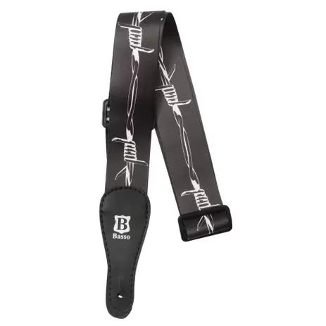 Correia com a qualidade Basso, presente há 14 anos no mercado. Design e durabilidade para alça do seu instrumento. Correia produzida em poliéster com estampa "Arame Farpado". Ponteiras em sintético duplo reforçadas, com 5 cm de largura e 1,55mts de comprimento.