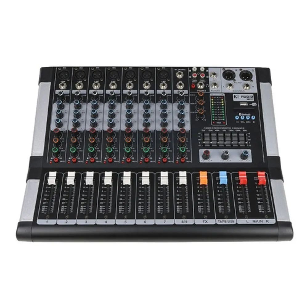 - Marca: K-Audio - Modelo: Mi 80 - Mesa de som 8 entradas - Entradas balanceadas XLR/P10 - Equalizador paramétrico de 3 bandas Por Canal (low – grave 100Hz / mid – médios 1Khz / High – agudo 10Khz) - Ajuste do pré amplificador (Gain) - 1 Saída Auxiliar (AUX SEND) - Controle de PAN por canal (Left / Right) - Botão Mute – basta apertar para desligar o canal enquanto não estiver usando - Entrada USB/MP3 - Entrada de Áudio via Bluetooth - + 48v Phantom power - Display LCD - Equalizador gráfico de 7 bandas para ajuste da saída master da console - Efeito REPEAT/DELAY - Entrada Mic: -60Db - Entrada de canal estéreo: -40Db - Envio EFX: -20Db - Retorno EFF: -20Db - Bivolt Automático - Tamanho: 48 x 40 x 15 Cm - Peso: 4,88 Kg |